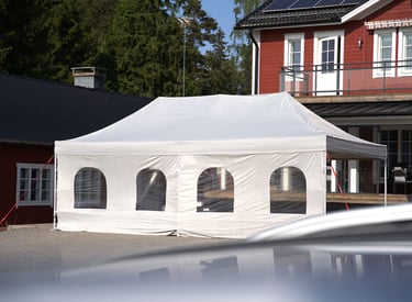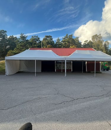 4x6m ja 4x8m telttoja, jotka voidaan yhdistää suuremmiksi kokonaisuuksiksi. Sivuseinät ja ikkunat saatavilla.